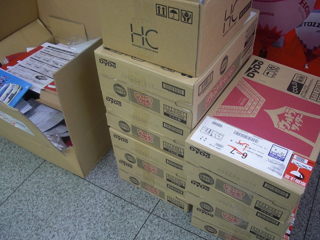 たくさんのダンボールの山の中から看板やカタログ、ポップなどなど