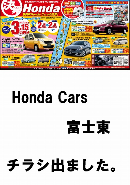 ホンダカーズ富士東のブログ。ホンダ関係の記事が中心なんですが、グルメ情報やイベント情報もたくさん載せたいと思ってます。